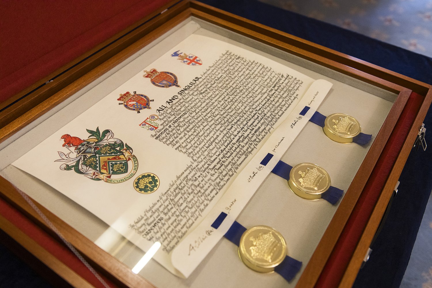 Whereas Terence Stuart Mallison Gentleman President of The Institute of Carpenters hath represented unto The Most Noble Miles Francis Stapleton Duke of Norfolk Knight of the Most Noble Order of the Garter Knight Grand Cross of the Royal Victorian Order Companion of the most Honourable Order of the Bath Commander of the Most Excellent Order of the British Empire upon whom has been conferred the Decoration of the Military Cross Earl Marshal and Hereditary Marshal of England that the Incorporated British Institute of Certified Carpenters was incorporated on the Twenty-second day of January 1903 under the Companies Acts 1862-1900 with the principal purposes of maintaining traditions of the ancient craft of carpentry and to advance and enhance the status of those engaged in woodworking crafts That on the Fifth day of June 1976 the name of the said Incorporated British Institute of Certified Carpenters was changed by Special Resolution passed at an Annual General Meeting to the Institute of Carpenters That the affairs of the Institute of Carpenters are managed by a Council and such Council being desirous of having Armorial Ensigns established under lawful authority and recorded in Her Majesty’s College of Arms for the Institute of Carpenters he as President of the said Council and on behalf of the same hath requested the favour of His Grace’s Warrant for Our granting and assigning such Arms and Crest and in the same Patent such Device or Badge as We deem suitable to be borne and used by The Institute of Carpenters on its Common Seal or otherwise according to the Laws of Arms And Forasmuch as the said Earl of Marshal did by Warrant under his hand and Seal bearing date the Twenty-Eighth day of February 1990 authorize and direct Us to grant and assign such Arms and Crest and such Device or Badge accordingly. Know Ye therefore that we said Garter Clarenceux and Horroy and Ulster in pursuance of His Grace’s Warrant and by virtue of the Letters Patent and Our several office granted by The Queen’s Most Excellent Majesty to each of Us respectively do by these Presents grant and assign unto The Institute of Carpenters the Arms following that is to say:- Vert on a Chevron Or between two Cottice dovetailed on the outer edge Argent two Carpenters Planes in chevron Gules all between three Oak Trees eradicated Gold And for the Crest upon a Helm with a Wreath Argent and Vert A Beaver sejant erect Gules tailed Or supporting a Pair of Compasses Argent Mantled Vert double Argent And by the Authority aforesaid We do further grant and assign the following Device or Badge that is to say On a Roundel Or a Roundel dovetailed Vert Thereon an Oak Tree eradicated Gold as are all in the margin hereof more plainly depicted to be borne and used hereafter by The Institute of Carpenters on its Common Seal or otherwise according to the Laws of Arms In Witness whereof We the said Garter Clarenceaux and Horroy and Ulster have to these Present subscribed Our names and affixed the Seals of Our several Offices this Second day of April in the Fortieth year of the Reign of Our Sovereign Lady Elizabeth the Second by the Grace of God of the United Kingdom of Great Britain and Northern Ireland and of Her other Realms and Territories Queen Head of the Commonwealth Defender of the Faith and in the year of Our Lord One thousand nine hundred and ninety one.