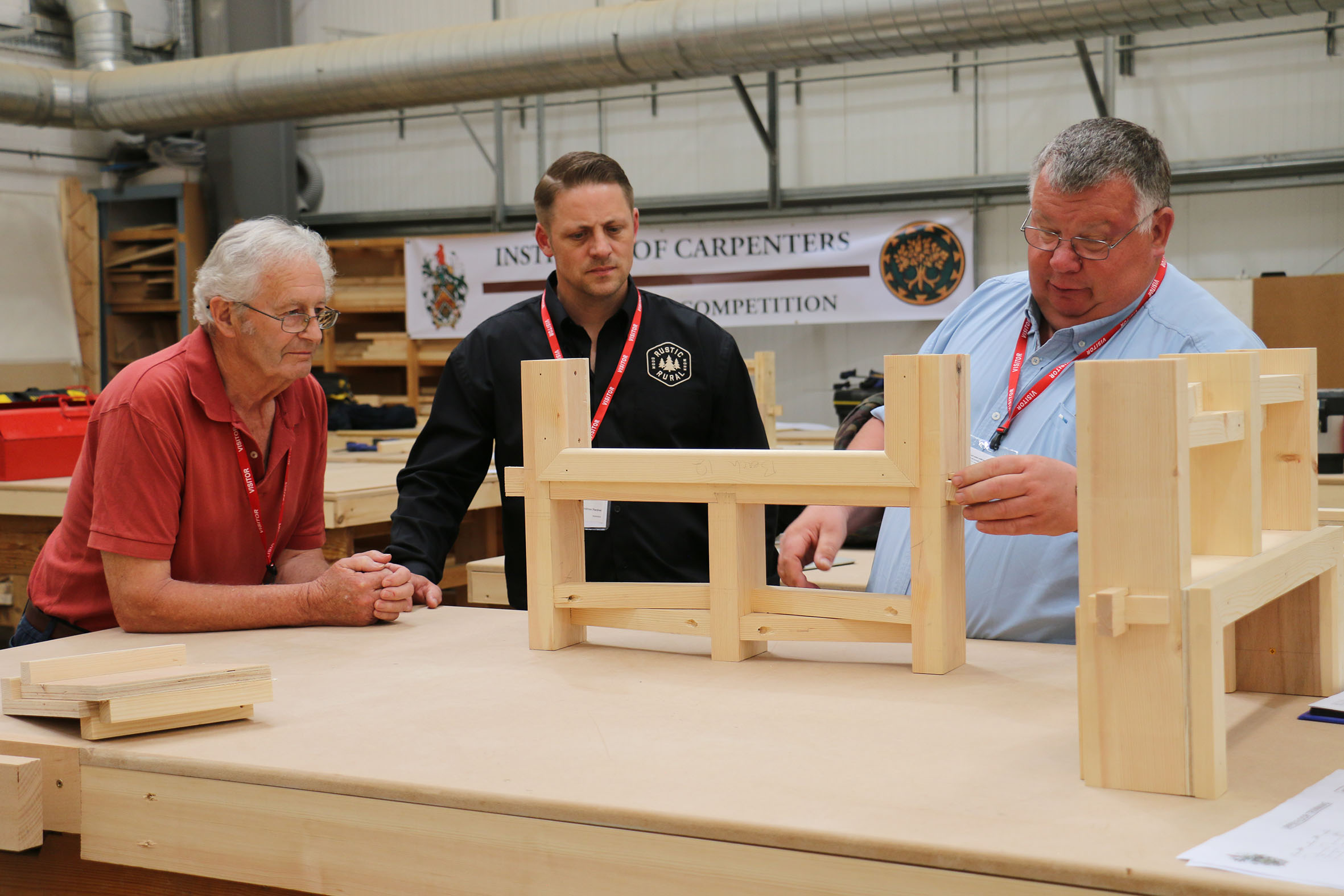 Judges inspecting the work before announcing the winners Published 08/05/2025 at 2362 × 1575 in West Nottinghamshire College Host Professional Carpentry Competition